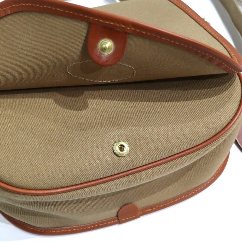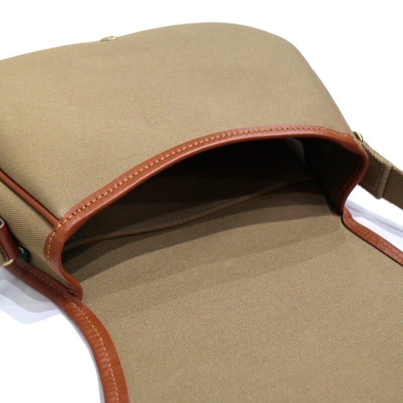 シンプルなフラップはブライドルレザーの縁取りが施され、ダブルステッチで縫い上げられており、非常に丈夫なつくりになっています。