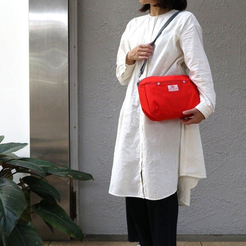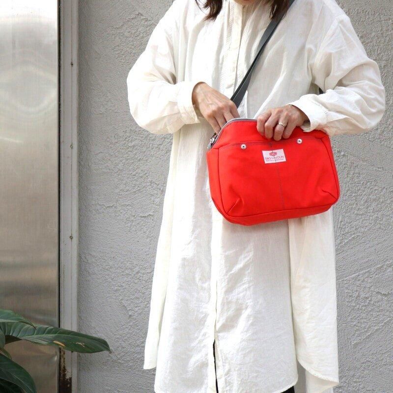 薄手の11号帆布と、軽快なナイロンの持ち手がコンビカラーになったカラフルな色合いが魅力のポシェット。コンパクトながらマチも程よくあり、長財布やマイボトルも入る収納力。外側に4つのポケットがあり、小物の出し入れに便利。ストラップは長さの調整と取り外しが可能でポーチにもなります。ちょっとしたお買い物や旅行先で活躍すること間違いなしです。