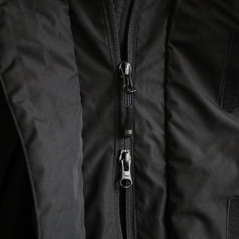 フロントはダブルフラップ+ダブルジッパー仕様、袖先にインナーカフを搭載し、腕の動作も妨げず、冷気の侵入を防ぎます。