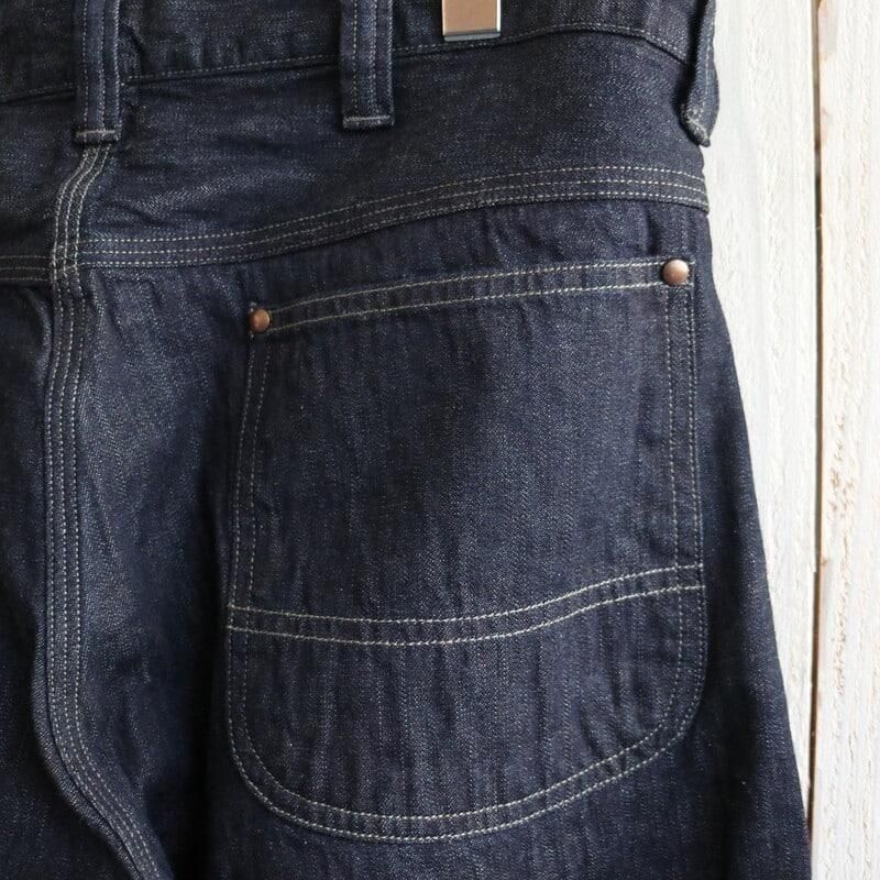 オリジナルのデニムを使用し、タテ糸は紡績工場で作られた原綿の素材感を再現した糸、ヨコ糸はナチュラルなムラ糸を採用。独特の凹凸のある素材感がヴィンテージ感を表現しています。