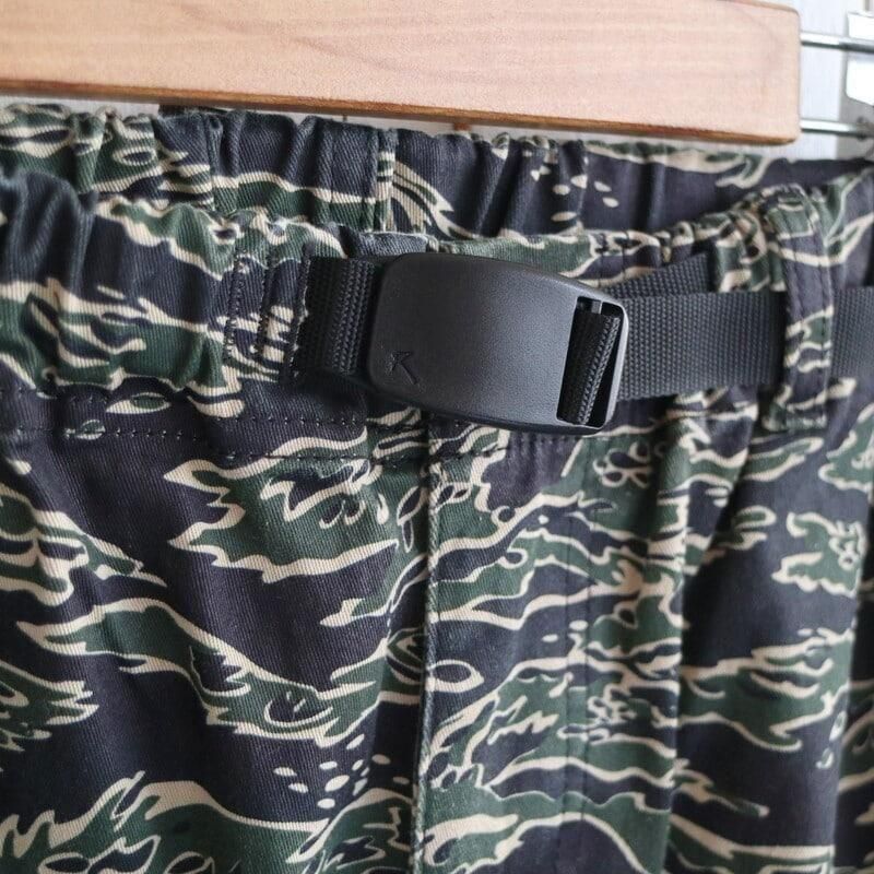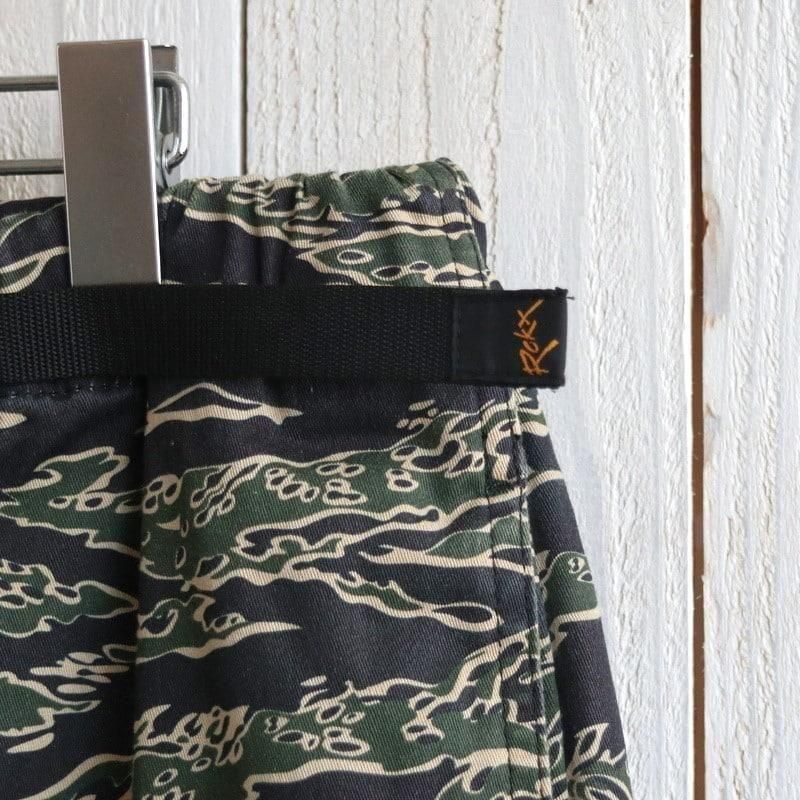 ROKXオリジナルのコットンストレッチツイル素材を使用し、耐久性と伸縮性を両立。ウエストのベルトはウェビングベルトにアップデートされ、更にアウトドアシーンでの動きやすさを追求しつつ、日常使いにも適しています。