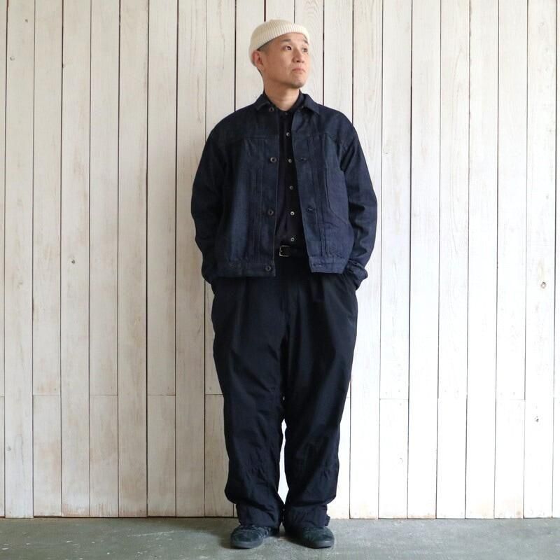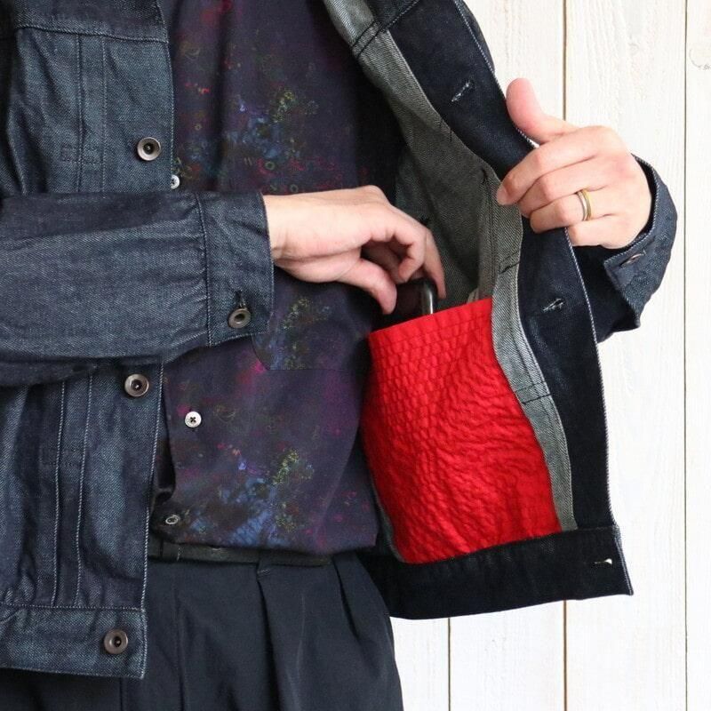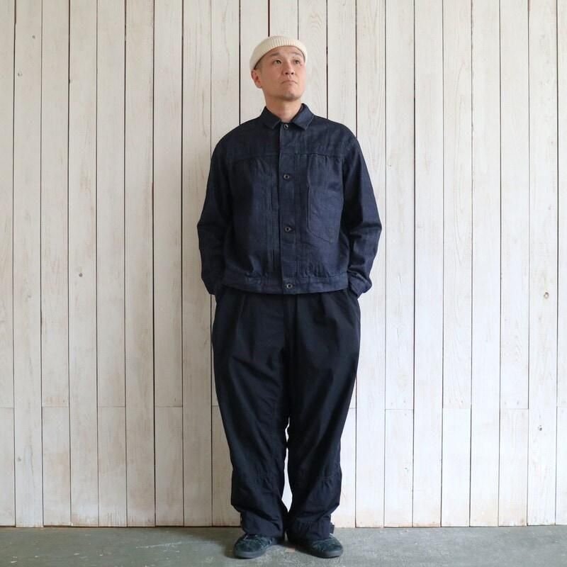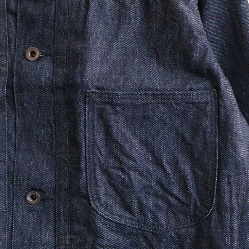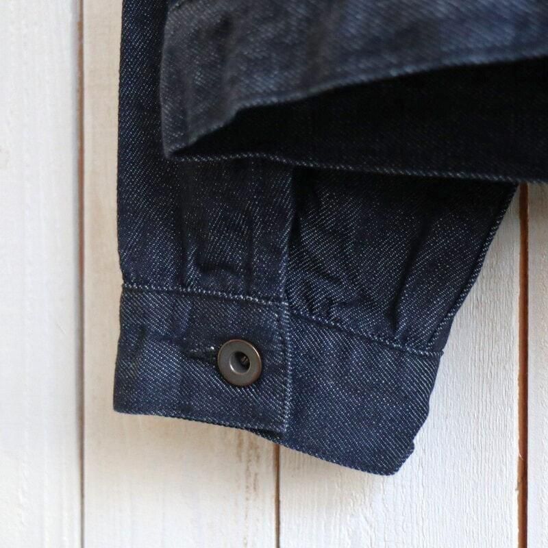 約11オンスという軽さながら、立体的なムラ感と奥行きのある風合いを備えており、見た目以上に存在感のある素材です。高い縫製技術によって生まれる豊かなパッカリングや陰影が、着込むほどに味わい深く育っていきます。
