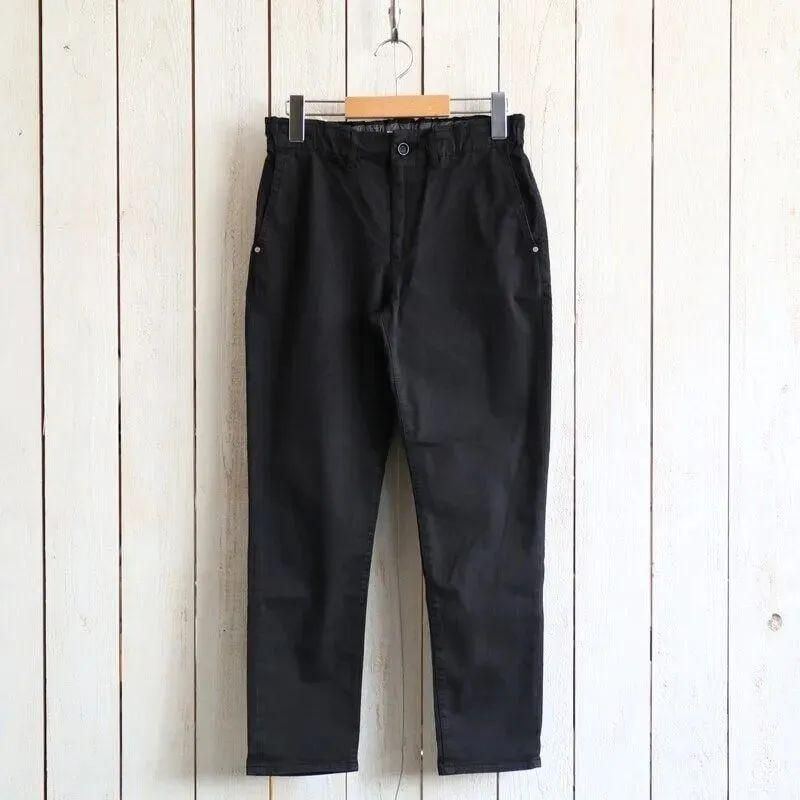 あらゆる動作の自由度を高めた抜群の穿き心地が魅力。 ウエストにゴムを仕込んだイージー仕様で、ストレスフリーの抜群の穿き心地。 しっかりとストレッチが効いたテーパードラインで、ワンピースやチュニックの下に合わせるパンツとしても活躍してくれます。製品染め特有の表情のあるカラーリングも魅力。