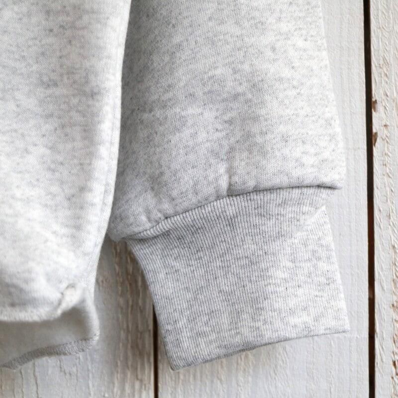 素材は80年代のヘルスニットのアーカイブである程よい厚みを持つ「スタンダードウェイト」。吸水性に優れたコットンと速乾性・耐久性に優れたポリエステルが混紡され、裏側は肌触りの良い起毛仕上げとなっています。