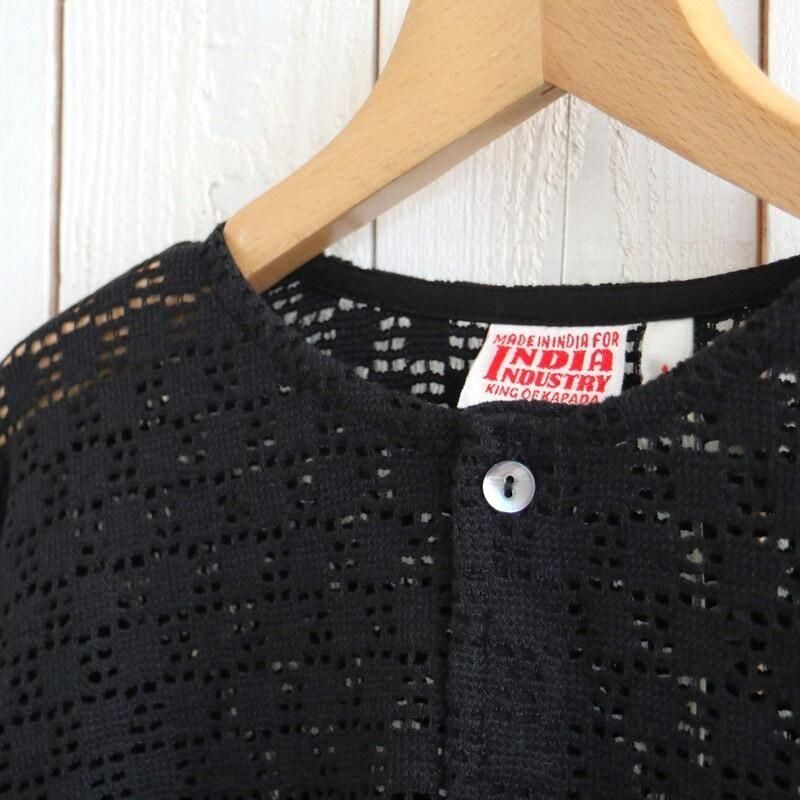 【INDIA INDUSTRY インディアインダストリー】SQUARE LACE CREW NECK CARDIGAN スクエアレース クルーネックカーディガン