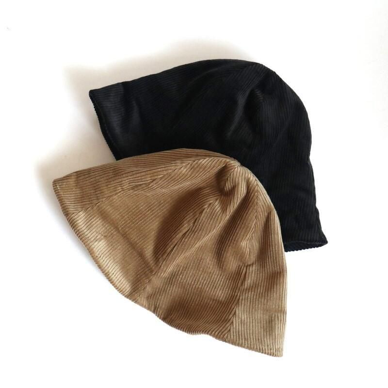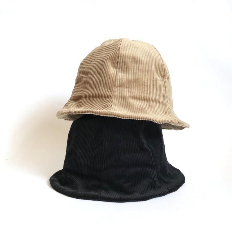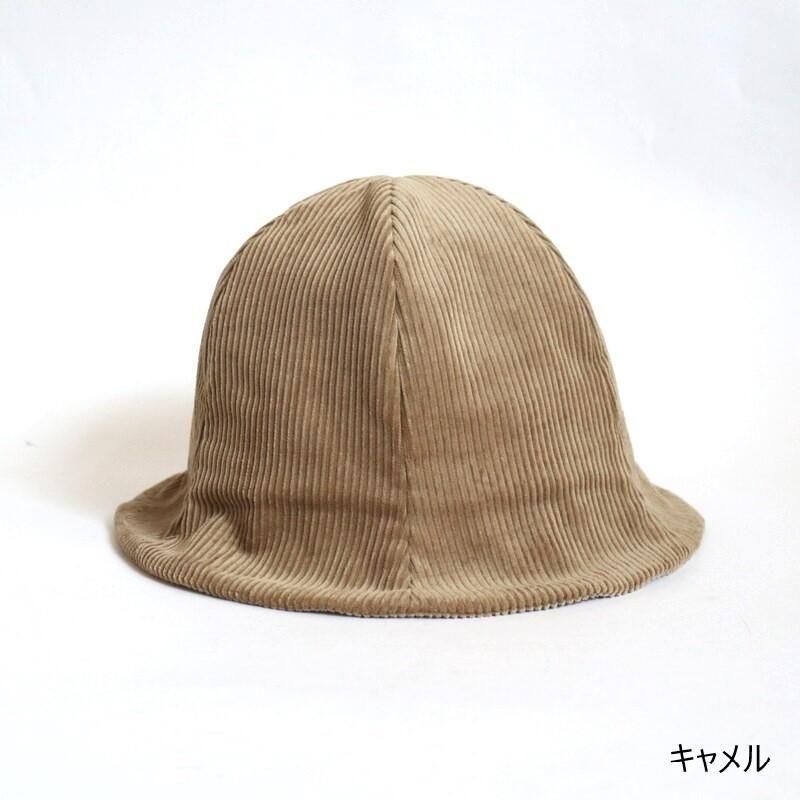 レトロな印象もある太畝のコーデュロイを使用した、チューリップハット。