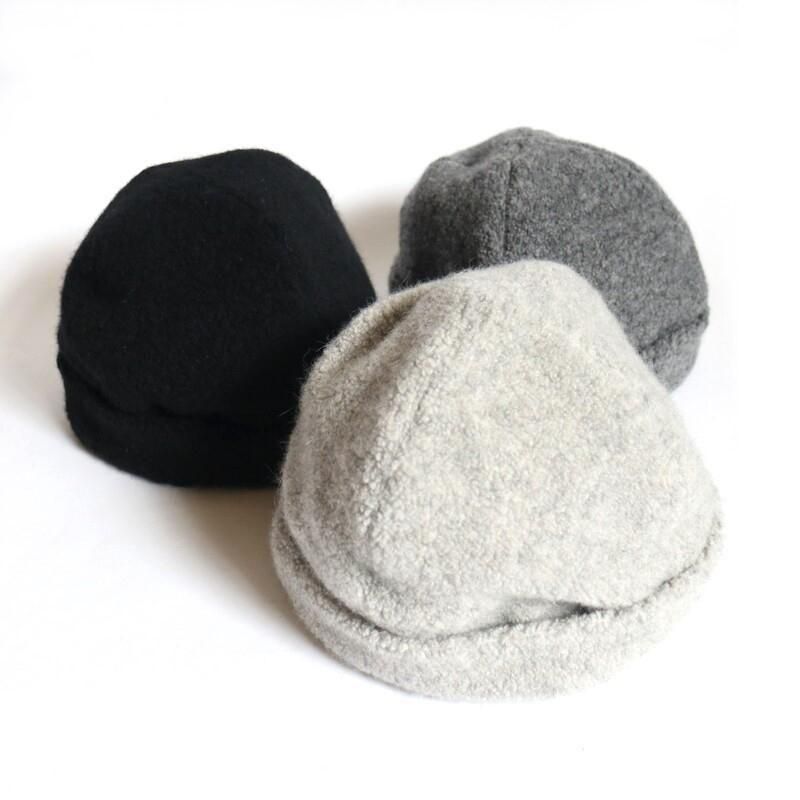 折り返し部分はお好みで折り返し幅を変えたり、延ばして耳まで覆ったり様々にアレンジが出来ます。