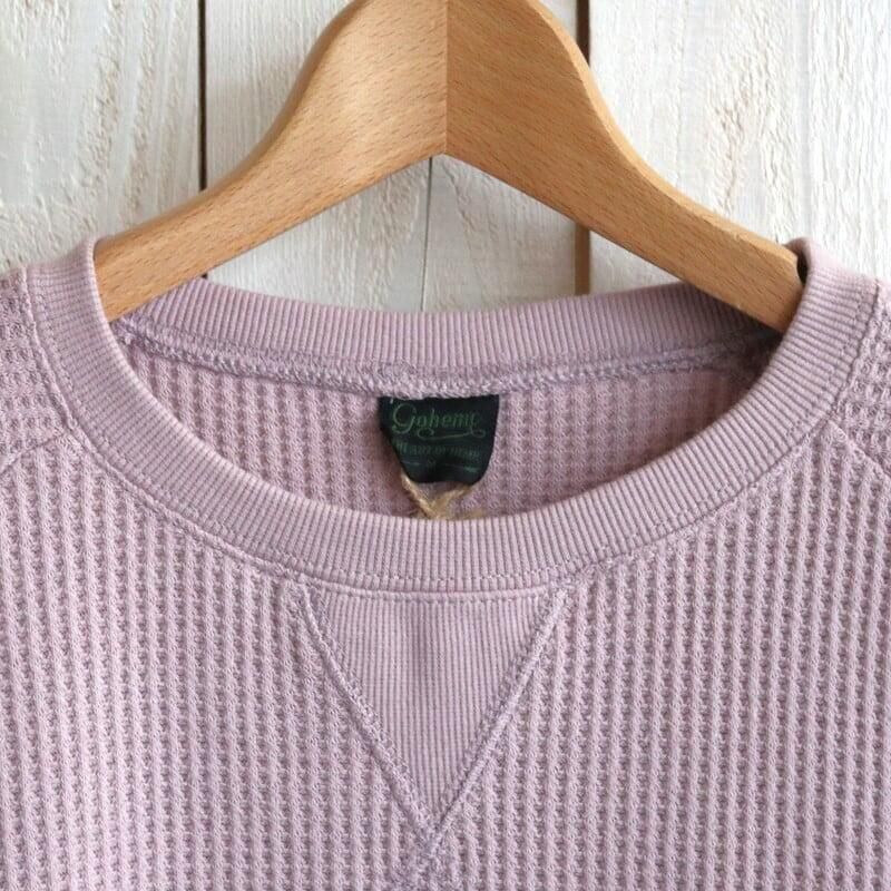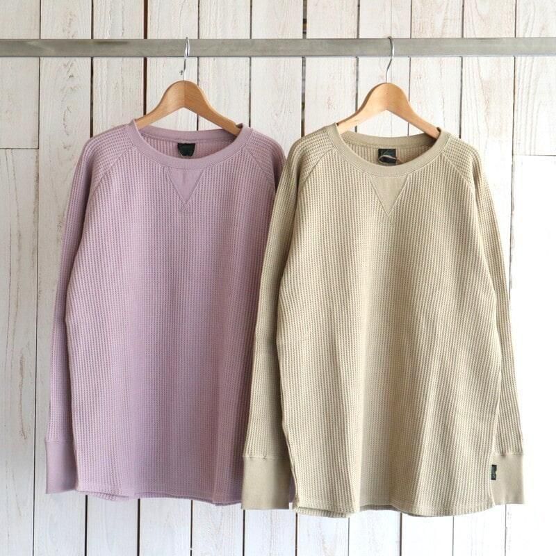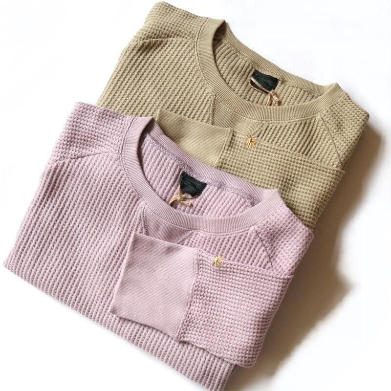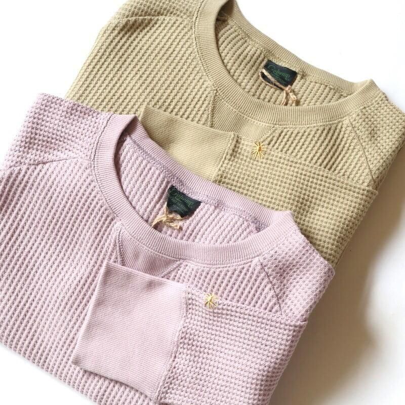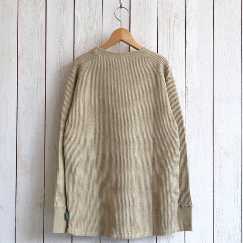 GO HEMPオリジナルのヘンプ×コットンワッフルシリーズから登場した、程よい厚みと安心感のある生地感が魅力のロングスリーブTシャツ。サーマル生地特有の凹凸が空気をため込み、優れた保温性を発揮する一方で、ヘンプ素材の吸湿速乾性により蒸れを防ぎ、快適な着心地を実現します。暖かさと通気性をバランスよく備えた、シーズンレスに活躍する一枚です。