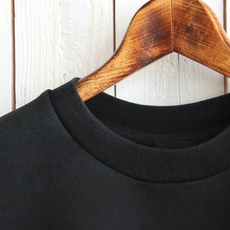 ビンテージスウェットを彷彿とさせる広めなアームホールとゆとりのあるボックス型のシルエットも特徴です。
