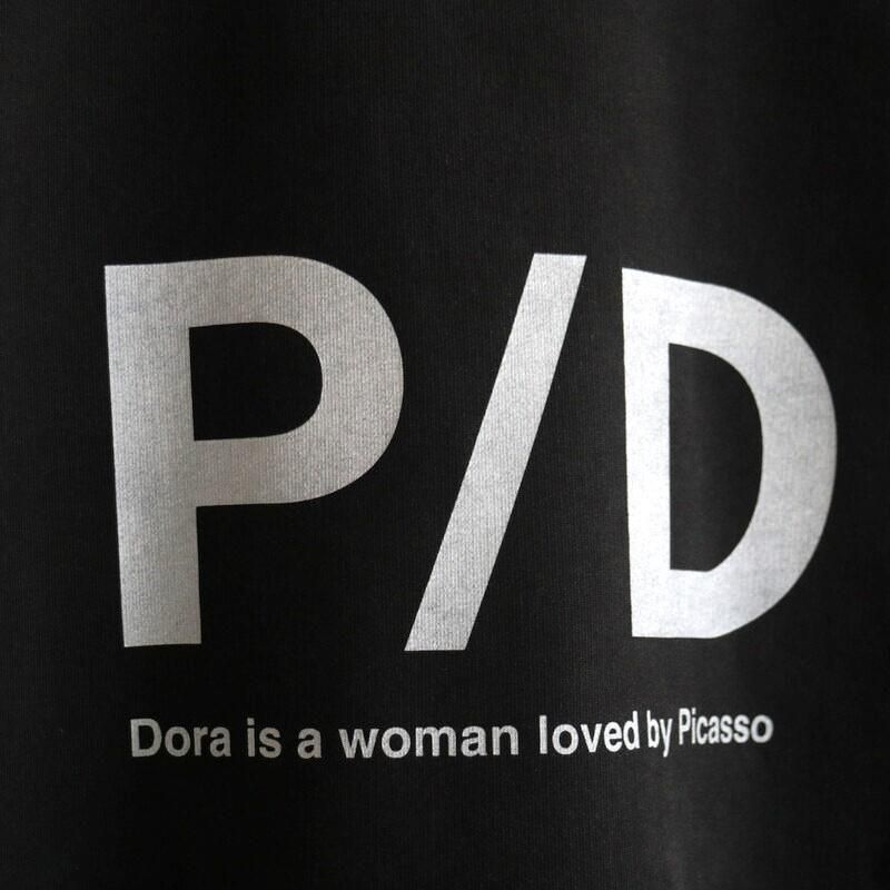 ビンテージテイストなカラーリングに落とし込み、バックにはピカソとドラの関係性を象徴するイニシャル「P/D」をプリント。