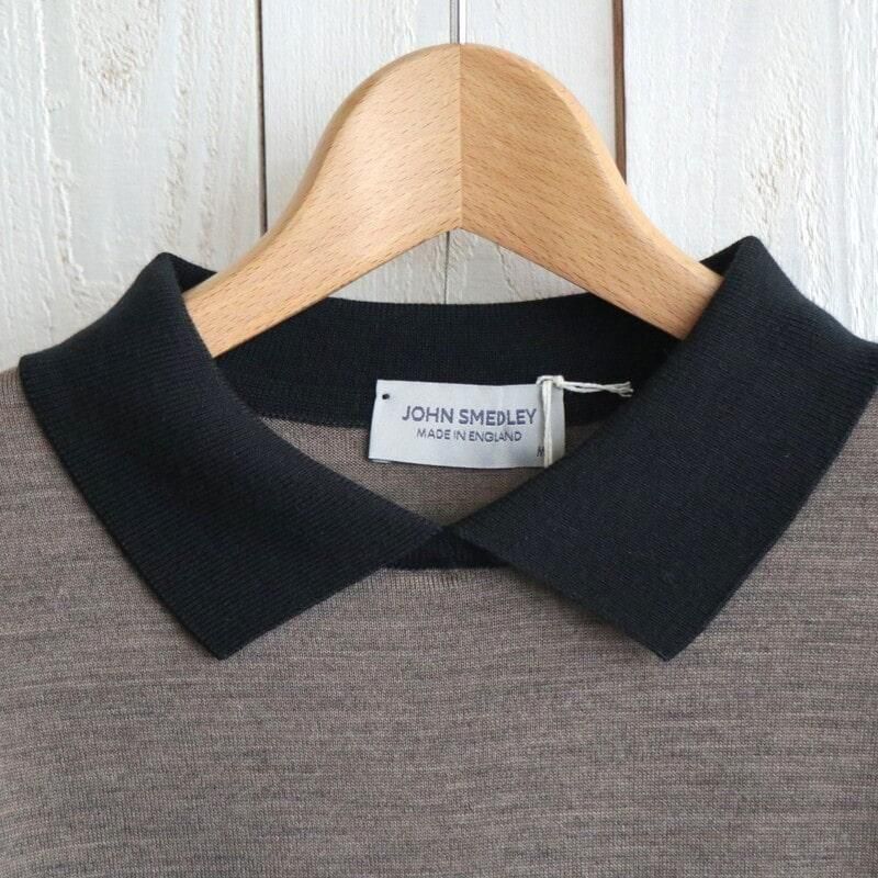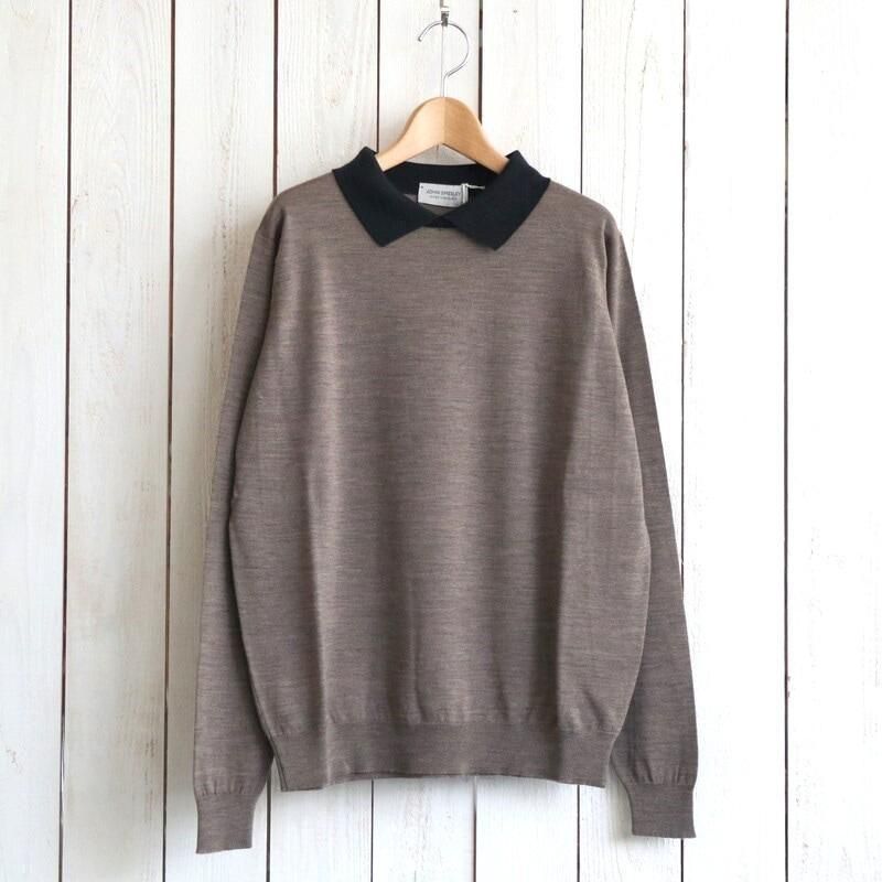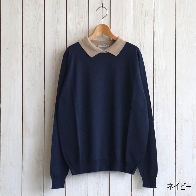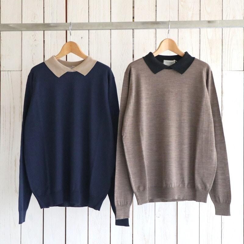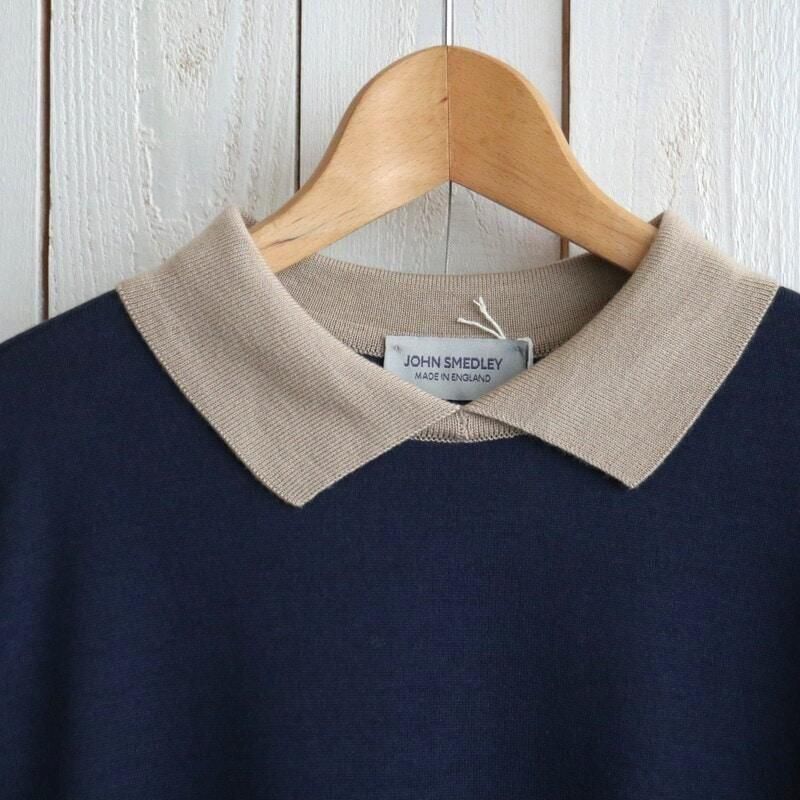 【JOHN SMEDLEY ジョンスメドレー】 バイカラー長袖クレリックニットポロシャツ