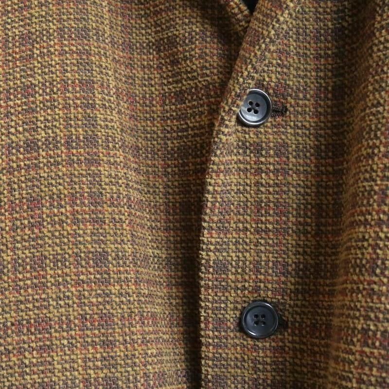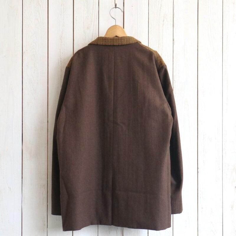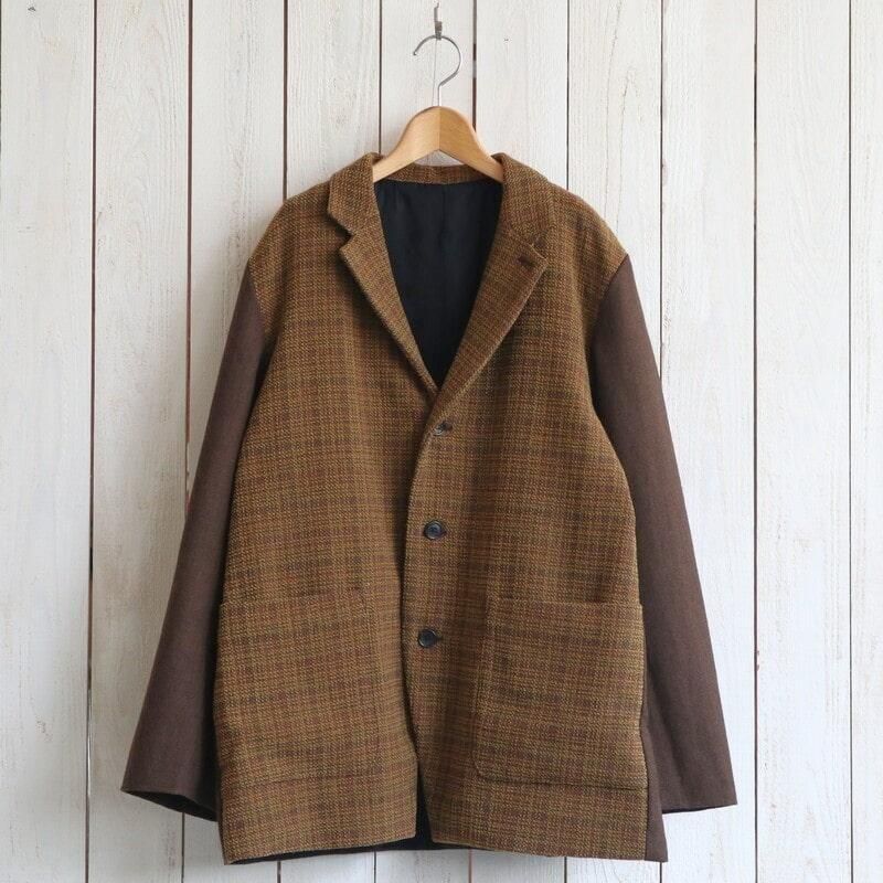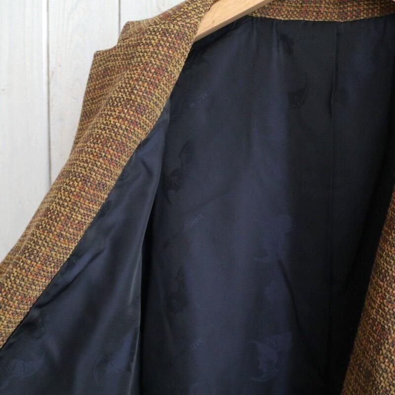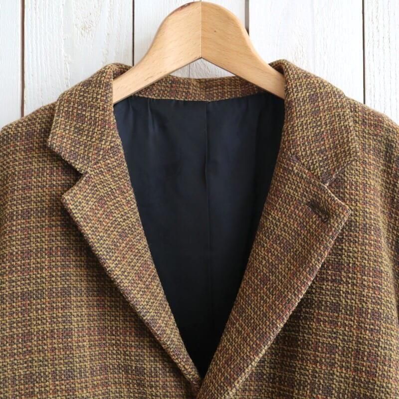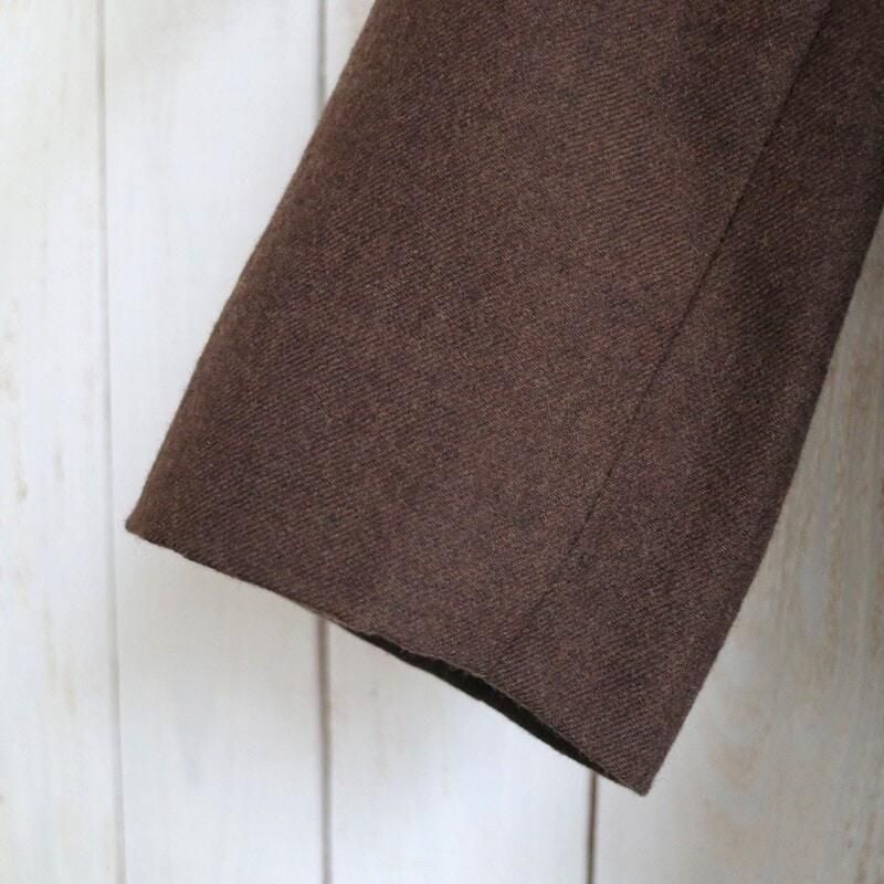 前身頃の裾は、どこか燕尾服を思わせるような独特のカッティングが施されており、クラシックな雰囲気と遊び心が絶妙なバランスで共存しているジャケットです。