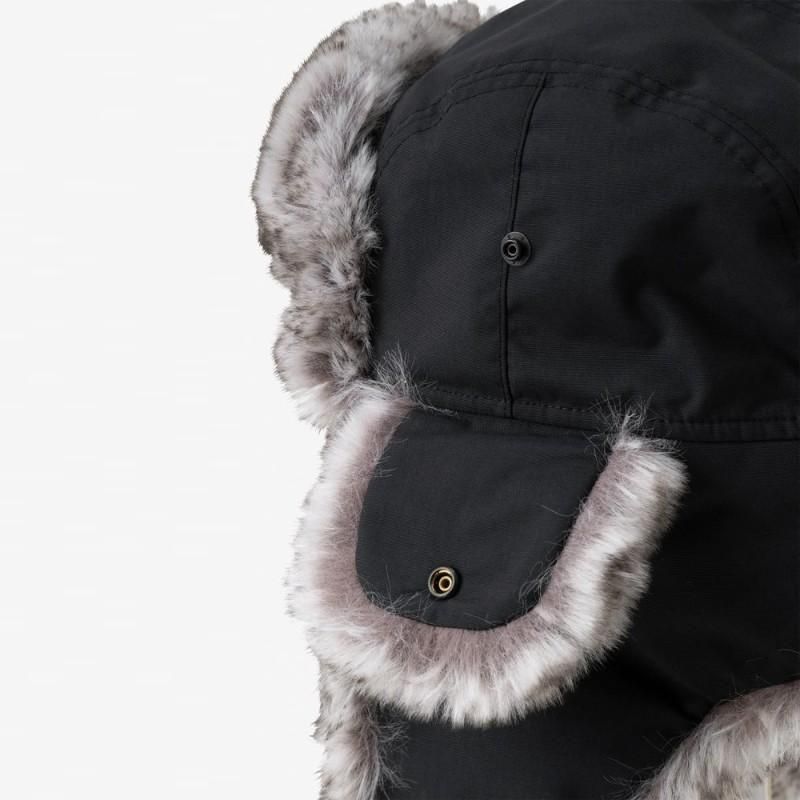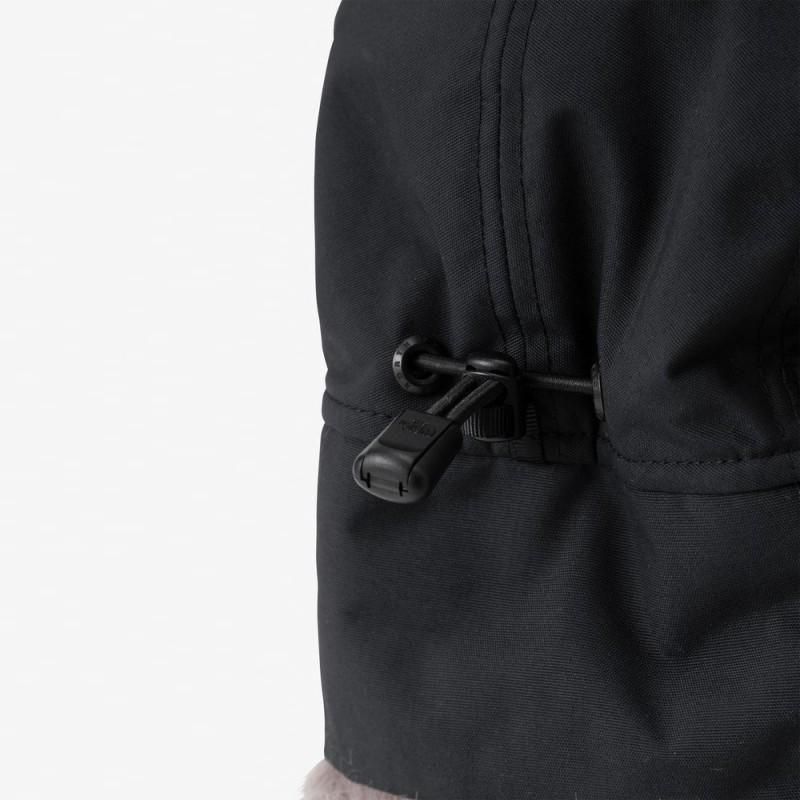 表地には防水透湿性に優れたナイロンオックス素材を採用。雨や雪をはじきながらムレを軽減し、快適な着用感をキープします。つば裏と耳当て部分には、リアルファーのような色合いと手触りを再現したポリエステルファーを使用。毛足の長いファーがデッドエアを溜め込み、抜群の保温性を発揮します。
