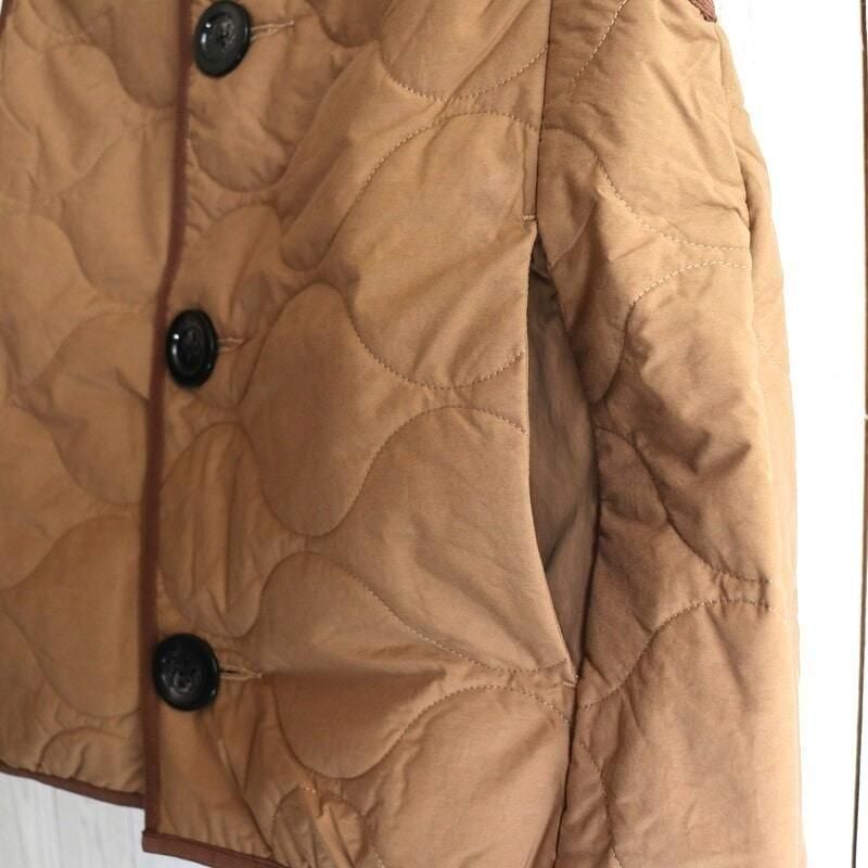 コットン×ナイロンの少しハリのある生地を使用したキルトに中綿をたっぷり込め、あたたかくて軽い着心地。
