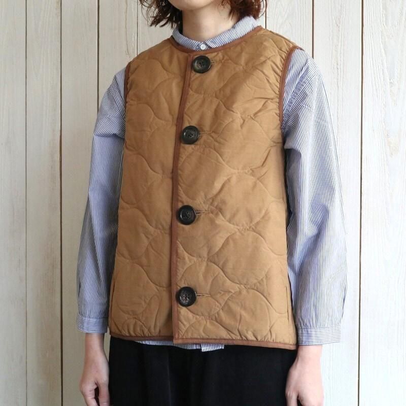 Brocanteらしい丸みのあるコクーンシルエットが可愛いキルトココンベスト。