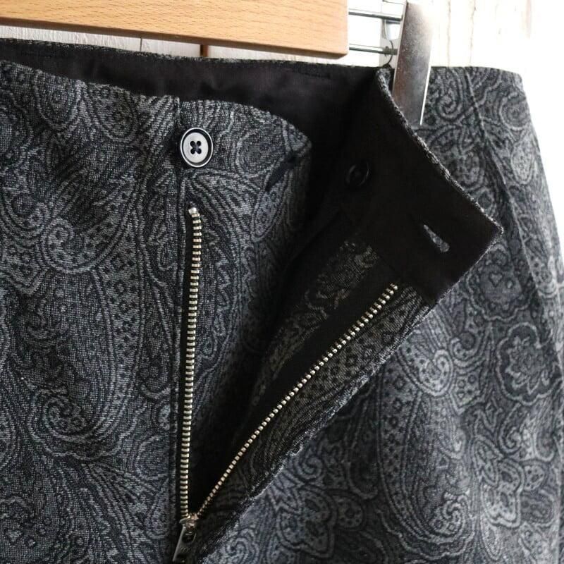 ペイズリー柄が織り込まれたジャガードウール生地を使用した、存在感ある太めのストレートパンツ。