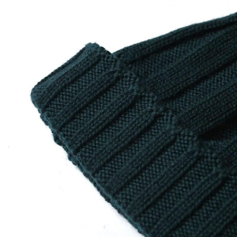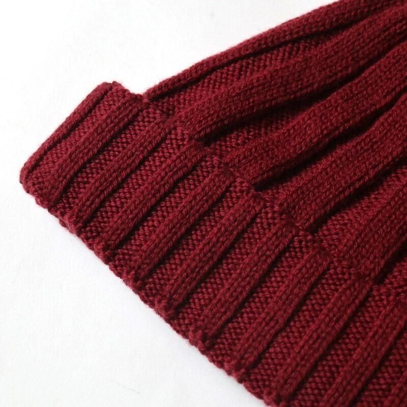 裾を二つ折りにしたショートワッチタイプで、太めのリブ編みで程よい厚みのオーソドックスなデザイン。