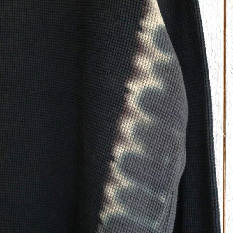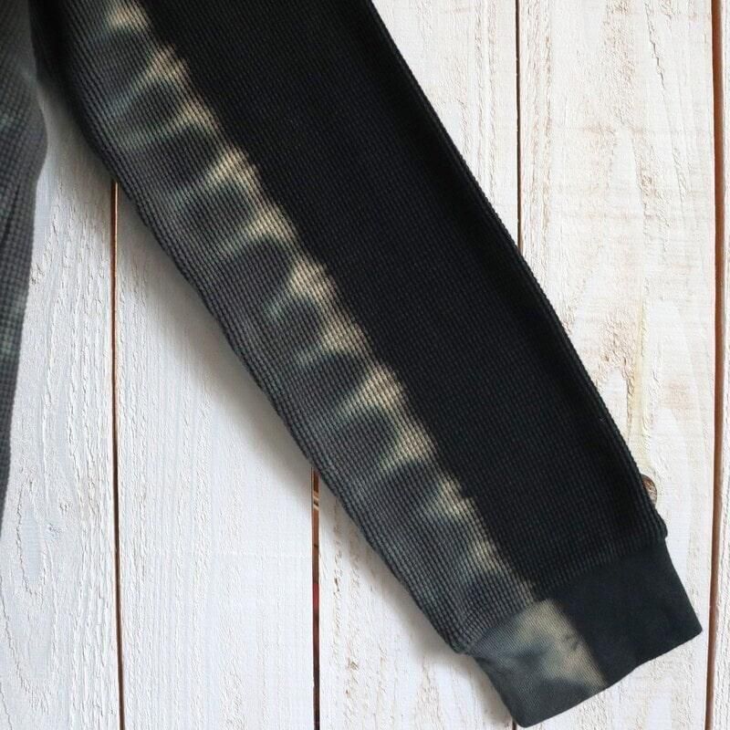 脇のラインに沿って袖口から裾まで大胆に施されたタイダイ染めが、